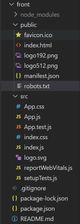 *reportWebVitals.js : 리액트의 성능을 측정하기 위한 것 (나중에 알아보자)