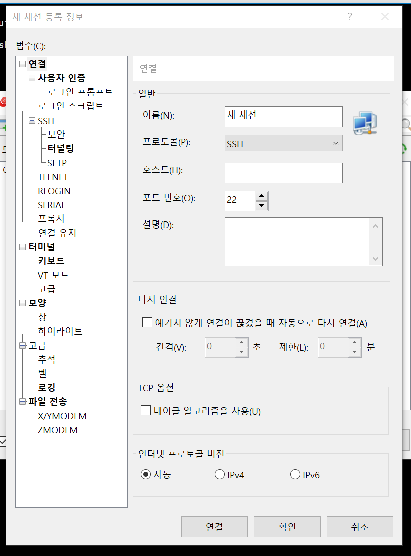 프로토콜을 SSH 프로토콜을 이용해 주겠구요.
